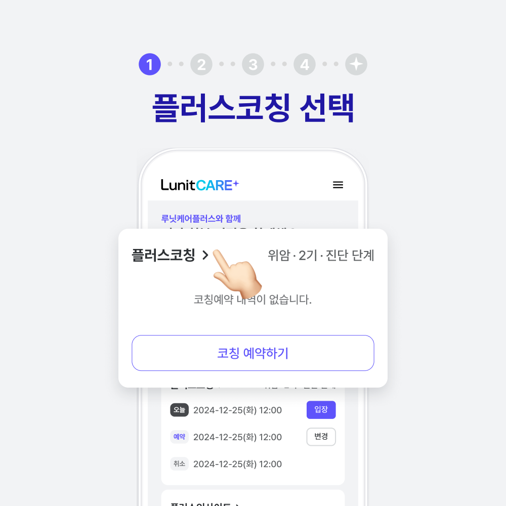 홈 화면의 플러스코칭 카드에서 [코칭 예약하기] 버튼을 눌러