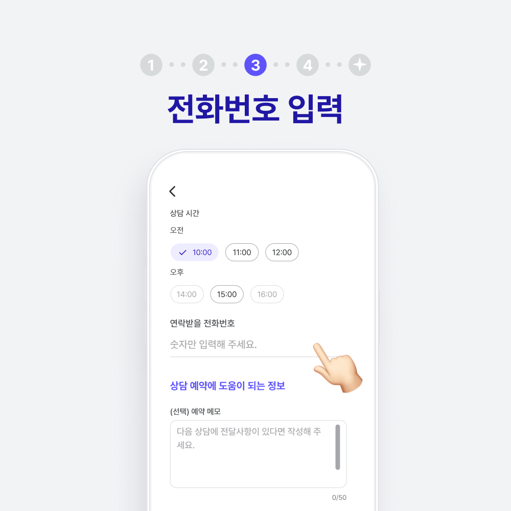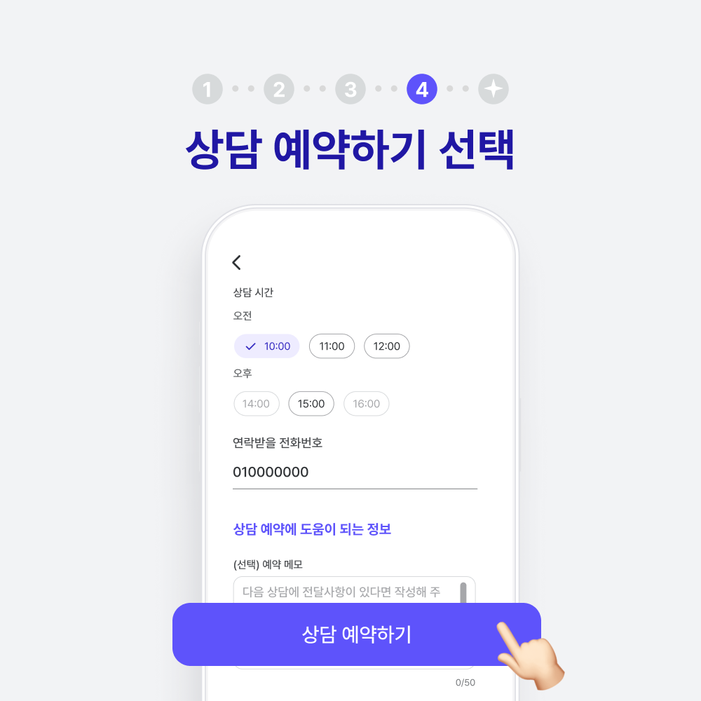 [상담 예약하기] 버튼을 눌러 예약을 확정할 수 있어요.