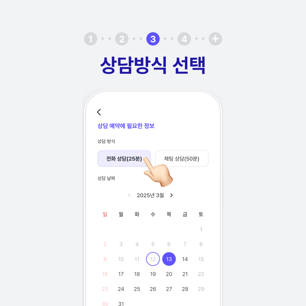 전화 상담(25분) 또는 채팅 상담(50분) 중