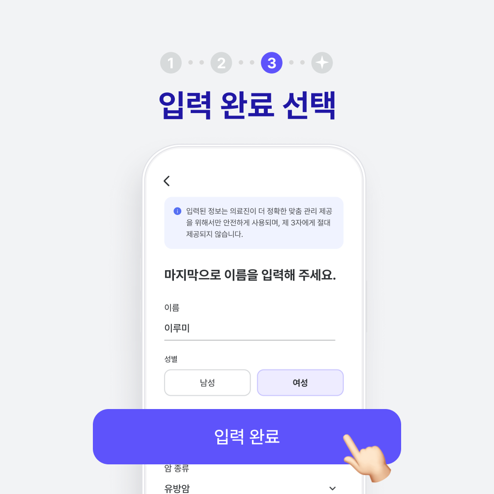 (입력된 정보는 의료팀 맞춤 케어 제공 외 다른 목적으로 사용되지 않아요.)