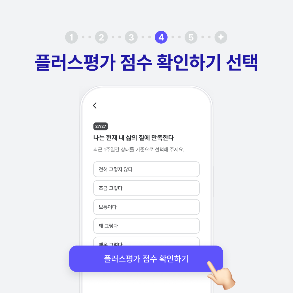 최근 1주간의 나의 건강 상태를 기준으로 질문에 응답해 주세요.플러스평가는 삶의 질을 수치로 보여주는 과학적 설문이에요.